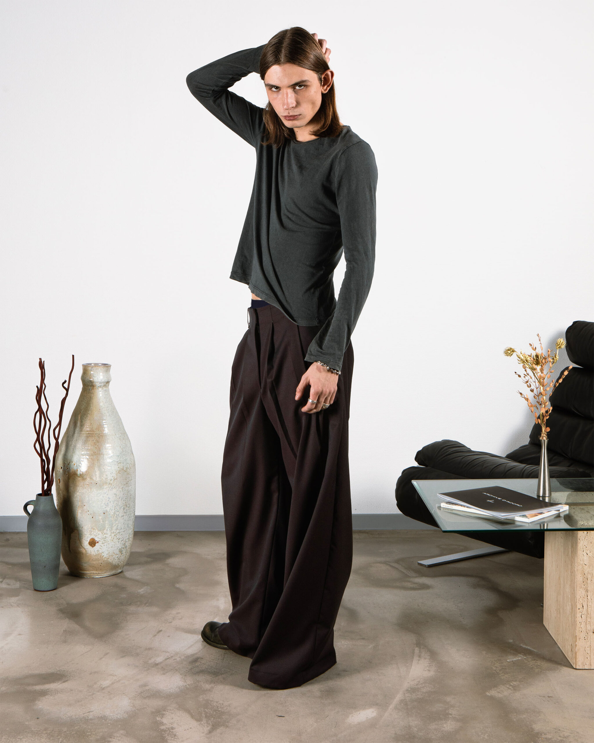 The Pleated Merino Trousers refine ARCHIVE D’ACCRO’s approach to tailoring through a silhouette defined by architectural precision and fluid ease.