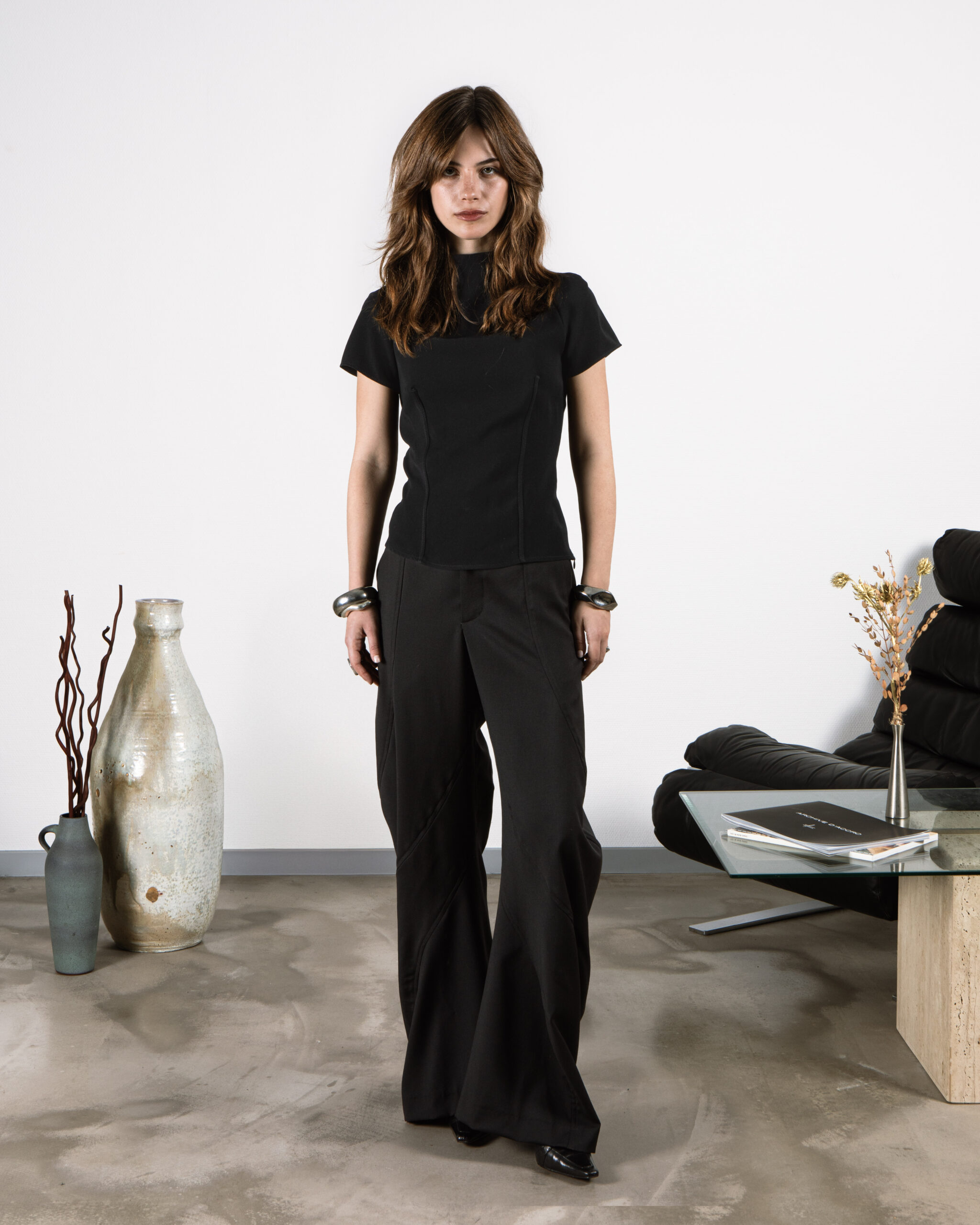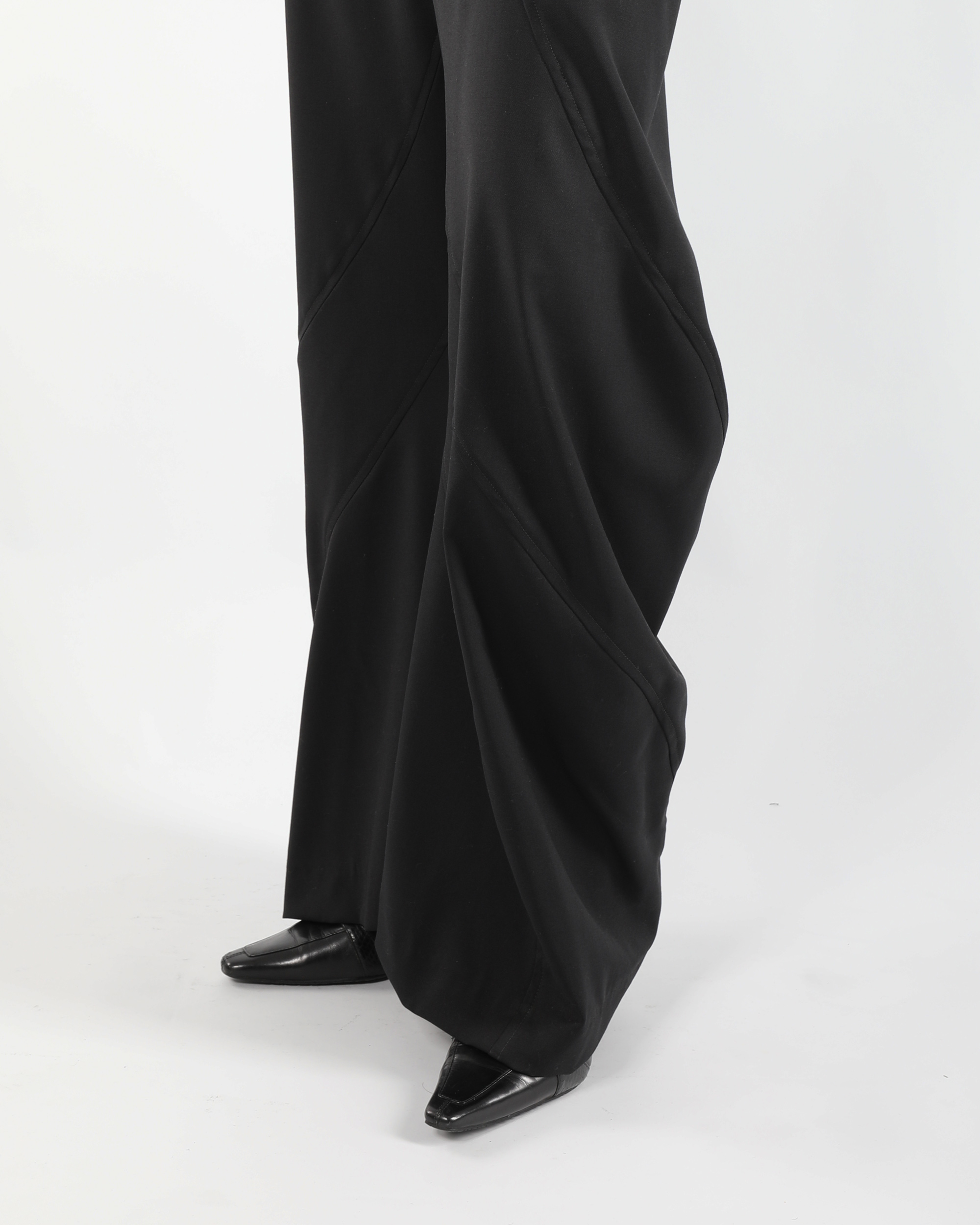 The SWIRL PANTS embody ARCHIVE D’ACCRO’s interpretation of the classic wool trouser but reimagined with a deliberately draped silhouette.