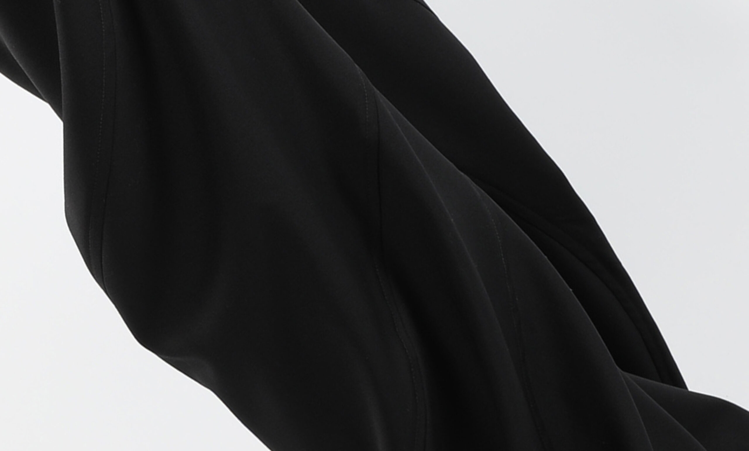 Spiral seam lines sculpt subtle volumes, giving the garment its distinctively twisted form.